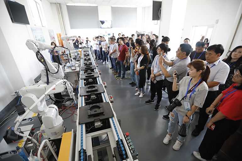 在智能制造技術及裝備研究中心,一條自主研發的智能全自動生產線正在調試。