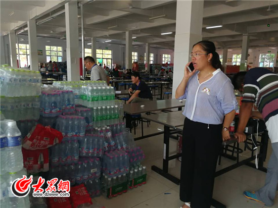 大眾網濰坊8月24日訊 24日中午已過飯點,在壽光災區最大的村民安置點之一——營里鎮第二初級中學,安置點總指揮營里鎮黨委副書記陳建君仍在電話對接救災物資。記者看到,她嘴唇干裂顧不上喝水,一頭打著電話,一頭為前來咨詢的村民、志愿者、工作人員解答著這里衣食住行的各種問題,至于吃午飯這事或許早已忘了。