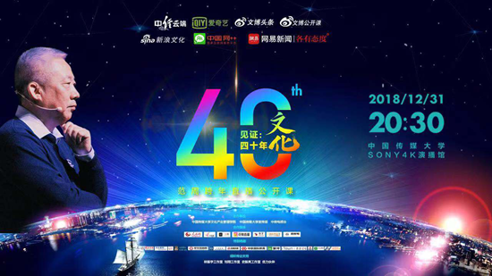 大眾網·海報新聞濟南12月29日訊(記者 樊思思)用知識總結過去,在思索中迎接未來。2019,大眾網·海報新聞帶你一起度過別樣的跨年之夜。2018年12月31日晚,由中國傳媒大學文化產業管理學院院長范周教授策劃,中國傳媒大學文化產業管理學院、中國傳媒大學宣傳部、中國傳媒大學電視臺聯合主辦的“見證:文化40年”范周跨年直播公開課將在傳媒大學4K演播廳舉辦。屆時,大眾網·海報新聞將對公開課進行全程視頻直播。