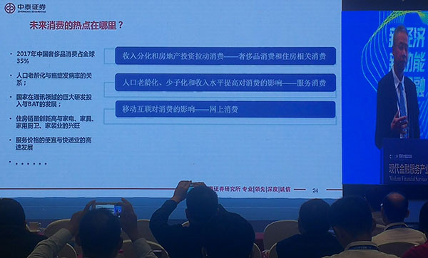 大眾網(wǎng)濟(jì)南9月29日訊 29日下午,在儒商大會(huì)2018現(xiàn)代金融服務(wù)業(yè)產(chǎn)業(yè)平行論壇上,中泰證券首席經(jīng)濟(jì)學(xué)家李迅雷對(duì)未來(lái)消費(fèi)熱點(diǎn)進(jìn)行了預(yù)測(cè)。他說(shuō),近期國(guó)內(nèi)居民家庭用電量保持兩位數(shù)增長(zhǎng),在一定程度上反映出網(wǎng)購(gòu)已成消費(fèi)熱點(diǎn)。除了網(wǎng)購(gòu),李迅雷還看好與住房相關(guān)的家電,以及奢侈品、和醫(yī)養(yǎng)健康等消費(fèi)領(lǐng)域。