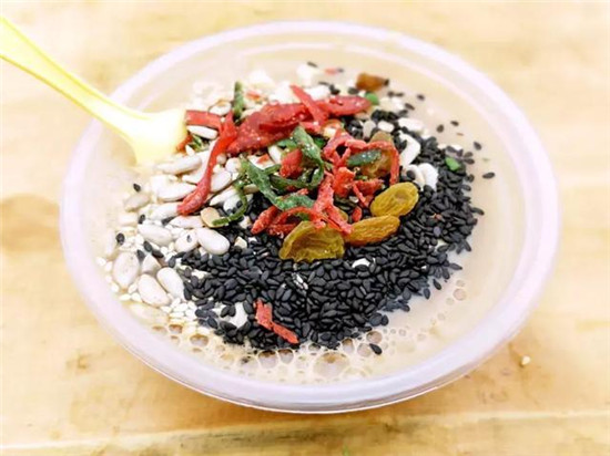 另外一“怪”便是濟南的茶湯沒茶。濟南的“泉水茶湯”采用五谷之首——小米為原料,制作工藝獨特,用大茶壺內沸騰的泉水沖熟后再撒上黑芝麻、葡萄干、紅糖、瓜子仁、花生、青紅絲,如此一碗味道醇和、彌香四溢的茶湯就做好了。