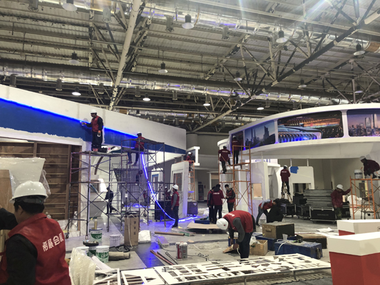 21日,記者在舜耕國際會展中心看到,第三屆山東金博會的展會布局已雛形初現。金融聚集區、銀行、保險、信托、資管、支付、第三方服務、金融科技、交易中心等近百家參展單位在各自的展區忙碌著,利用金博會開幕前僅有的時間進行最后的布置工作,機器人、刷臉機等各種普惠金融和金融科技產品陸續進場,為大家奉上一場異彩紛呈的視覺盛宴和超便利體驗。