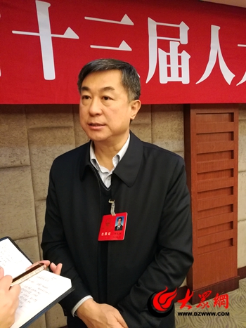山東省人大代表、山東大學齊魯醫(yī)院院長李新鋼接受大眾網(wǎng)記者采訪。(記者 王宗陽 攝)