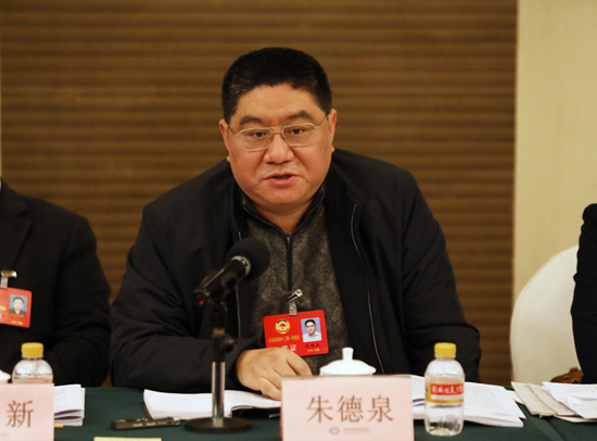 省政協委員、山東省互聯網傳媒集團副總編輯、大眾網總編輯朱德泉在參加小組討論時發言。