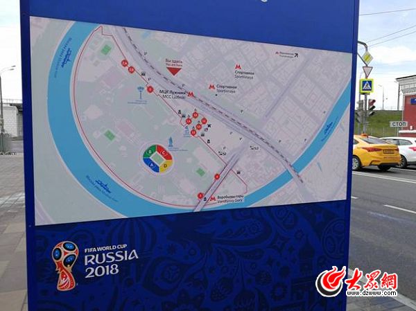 在盧日尼基體育場周邊的路口,相關(guān)的海報十分醒目。上圖中藍色的莫斯科河走向十分圓潤優(yōu)美,大自然的饋贈妙不可言。