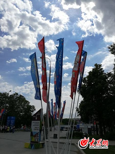 藍天白云,是莫斯科的一種常態(tài)。印著俄羅斯世界杯吉祥物“扎比瓦卡”的彩旗在涼爽的夏風(fēng)中獵獵作響。