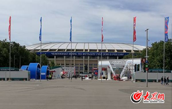 從莫斯科河邊步行五百多米,就進入了盧日尼基體育場的區(qū)域了。工作人員正在進行最后的修整,靜候世界各地的球迷和記者。