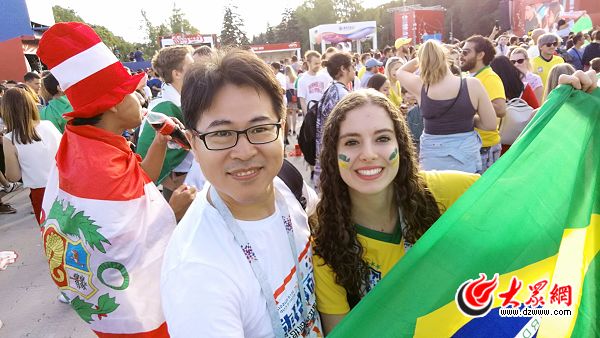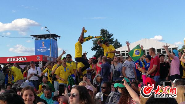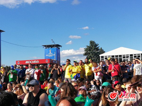 特派記者王封攝影報道 當地時間下午五六點,正是太陽毒辣的時候。在世界杯莫斯科球迷廣場,巴西與墨西哥球迷觀看比賽。