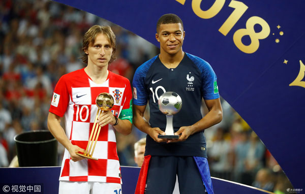 北京時間7月16日凌晨,2018俄羅斯世界杯正式落幕,法國隊多點開花以4-2擊敗克羅地亞,時隔20年再次捧起大力神杯。賽后,本屆世界杯的各個獎項揭曉,克羅地亞中場核心莫德里奇獲得金球獎(最佳球員);本屆世界杯表現極其搶眼的法國19歲小將姆巴佩獲得了最佳新秀獎;比利時門將庫爾圖瓦獲得金手套獎(最佳門將);攻入六粒進球的英格蘭中鋒哈利-凱恩收獲金靴獎(最佳射手)。