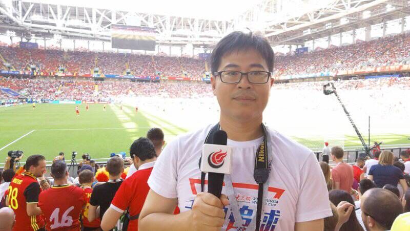 大眾網特派記者王封在比利時VS突尼斯比賽現場