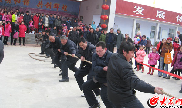 村民在郭家溝春節聯歡活動上拔河