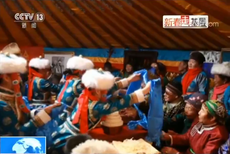 在內蒙赤峰的巴彥查干蘇木,牧民穿上了新年盛裝迎接克什克騰旗烏蘭牧騎的到來,以藍天為幕布,雪地做舞臺,進行了一場辭舊歲,迎新年的聯歡。