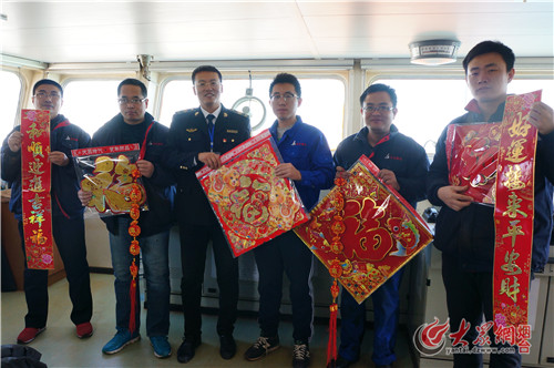 當記者將要結束采訪時,煙臺國際海員俱樂部的工作人員登上了“魏橋佳達1”輪,為船員帶來了節日的禮物。手握紅彤彤的福字,崔智憑露出了燦爛的笑容。今年,崔智憑將要和部分同事堅守崗位,雖然不能和家人團聚,但經過多年磨礪,崔智憑展現出船員特有的豁達與樂觀精神:“船就是水手的家,大海就是我們的母親,我們的‘魏橋佳達1’每年運送著無數的鋁礬土,為國家經濟建設做出了貢獻,過年了,我們要守著這位老伙計一同過大年。”