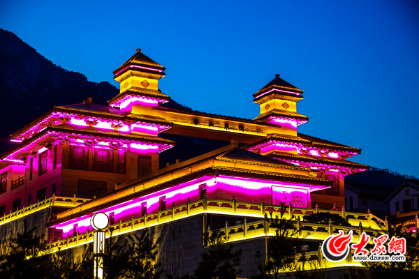 圖為泰山東街一角,雕刻的巨龍在燈光的照射下栩栩如生。