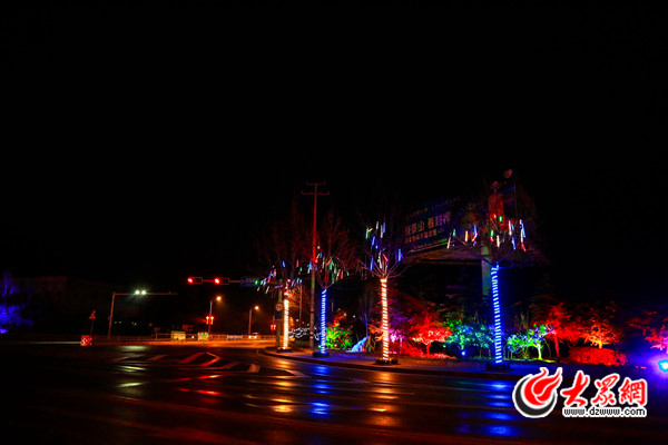 圖為泮河公園北面的新靈山大街,這條道路一直往西就是泰安高鐵站。現在整條道路都被燈光點綴,紅色燈籠和絢麗的燈光交融在一起,營造出一種節日的喜慶氛圍。