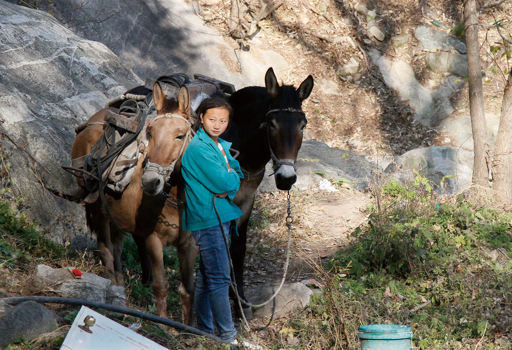 夫妻兩人牽著騾子,每天行走在山間,承擔著運輸各種物料的任務。白天,負責運輸物料,夕陽西下,他們還要給受傷的騾子敷藥療傷。他們牽著騾子常年穿行在高山密林里,就是為了完成特殊的運輸任務,他們被稱為“馬幫”。(泰安日報 趙文文 攝)