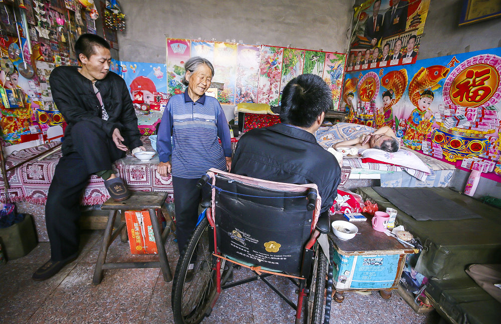 像往常一樣,李忠?guī)X挨個照顧完三個兒子,趁著這一點(diǎn)兒的空檔,在院子里干起了家務(wù)。已經(jīng)下午兩點(diǎn),李大娘連口水都沒來得及喝。也許,李忠?guī)X也沒有想到,命運(yùn)跟她開了這么大個玩笑——讓古稀之年的她用柔弱而堅(jiān)強(qiáng)的肩膀撐起了這個家。