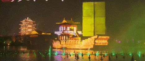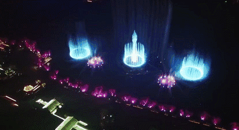 序曲“蝴蝶戲泉”,中間的噴泉伴隨著燈光左右搖曳,有蝴蝶紛飛的輕盈感,又像是水面上的花朵隨風(fēng)擺動(dòng)。