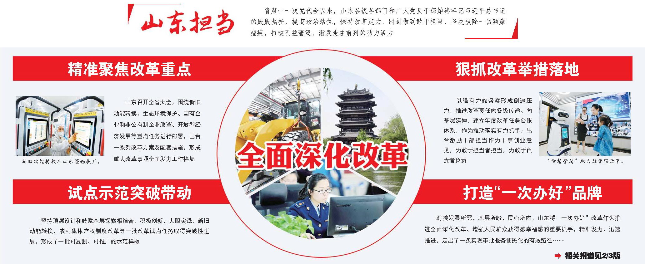 山東地處沿海,得改革開放之先。40年改革開放,發(fā)展了山東、改變了山東、成就了山東。省第十一次黨代會以來,新一屆省委堅決貫徹中央決策,準確把握十九大提出的改革部署、改革要求,堅決破除一切頑瘴痼疾,打破利益藩籬,激發(fā)了走在前列的動力活力。