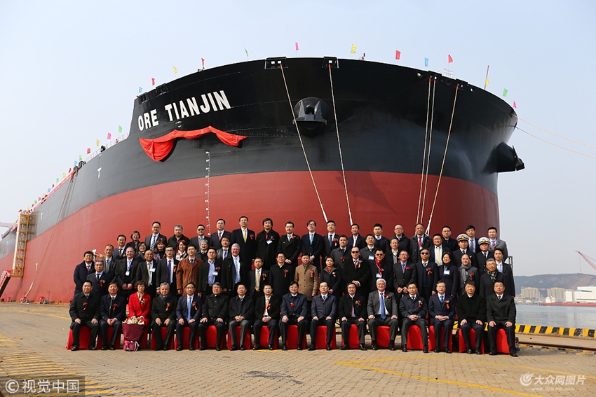 2018年3月22日,青島,在西海岸新區(qū)北船重工內(nèi),武船集團(tuán)打造的新型40萬噸超大型礦砂船“ORE TIANJIN”號(hào)命名交付。
