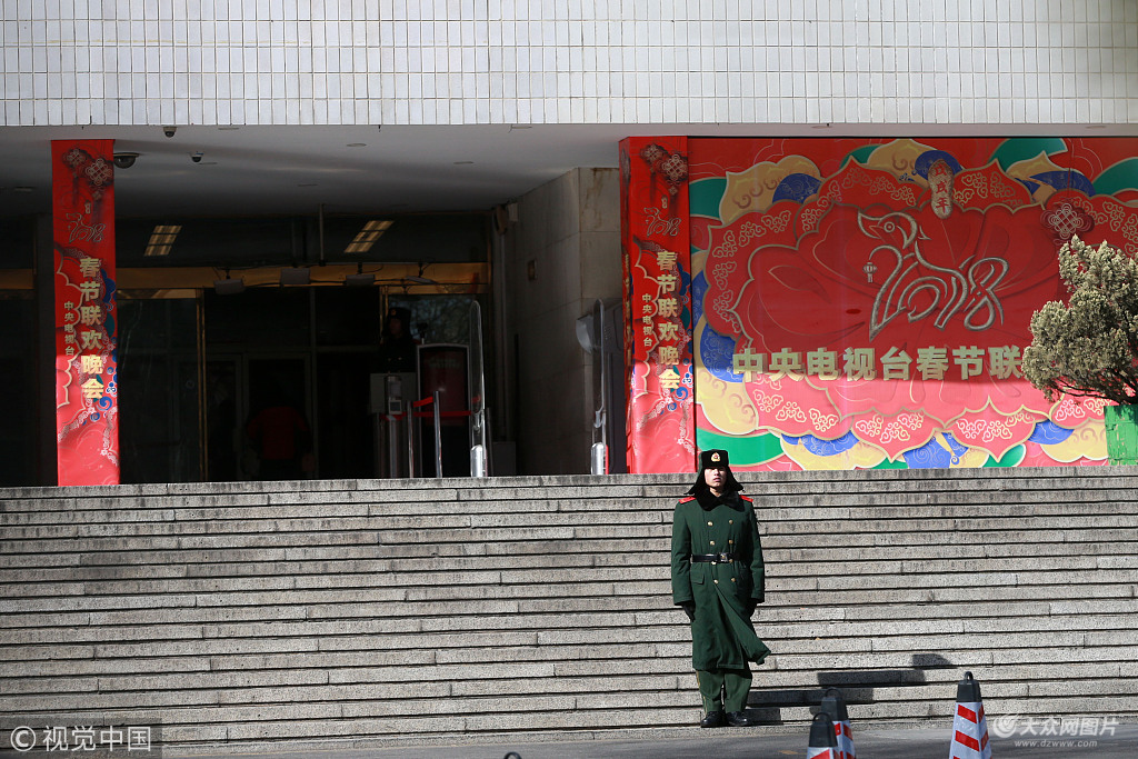 大眾網(wǎng)2月12日訊 2018年2月11日,北京,新春將至,2018央視狗年春晚的排練也加快了節(jié)奏。雖然北京刮起了大風(fēng),但并未影響各路媒體記者及粉絲們的關(guān)注,大家在寒風(fēng)中等待著演員們出進(jìn)中央電視臺演播大廳,現(xiàn)場內(nèi)外也都加強(qiáng)了安保,確保春晚彩排順利進(jìn)行。圖片作者:陳曉根/視覺中國