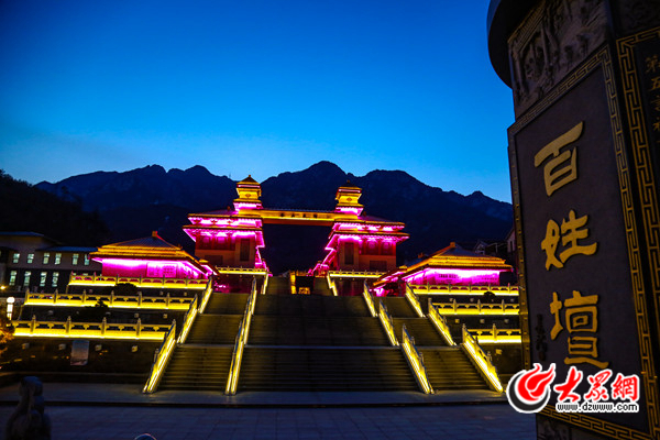 距離2018年央視春晚的腳步越來越近了,今年泰安成為央視春晚分會場,為了迎接春晚,泰安的街道和景點幾乎都進行了燈光亮化,夜幕來臨,整個泰城燈光璀璨、流光溢彩。(圖為央視春晚分會場舉辦地——封禪大典)