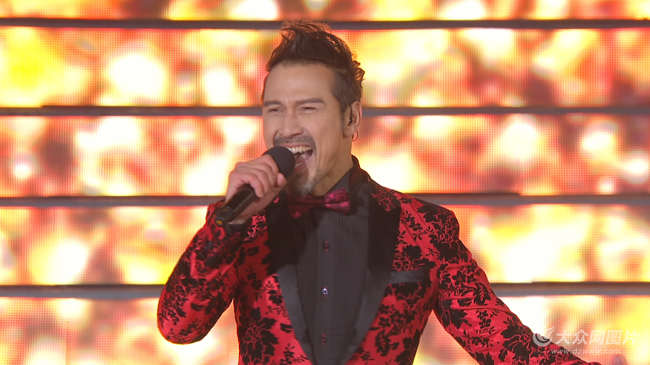 大眾網濟南2月15日訊 15日晚,在春晚山東分會場,來自內地以及香港、澳門、臺灣的青年演員黃曉明、鐘漢良、夏利奧、言承旭泰山腳下同唱《龍的傳人》。(大眾網——山東24小時客戶端記者 王磊)