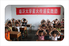 風雨不阻茶坡情,鄉水逐夢支教行。伴隨著汽車的一路顛簸,我們來到了茶坡這座美麗而又靜謐的小村莊。每天清晨,當第一縷陽光爬上屋檐,小志愿者們就踏上了鄉間濕潤而芬芳的小路上,早起的村民們雖然不認識你是誰,但是看到你穿的一身臨沂大學志愿者的服裝,也會親切的向你問好,熱情好客的大媽大嬸會熱心的請你到家中坐坐,路過的農民伯伯會對你投以最樸實的笑容,連那些害羞而可愛的孩子們也會爭搶著問你大學的生活是怎樣豐富多彩……這一刻刻一幕幕的瞬間在我們心中卻留下了溫暖的痕跡,是這雨后鄉間最美的太陽、彌足溫暖。雖然山路要走很久,可是每天和孩子們待在一起的時候,身上每一個細胞的不適仿佛都灰飛煙滅。孩子們渴求知識的眼神,讓我恨不得把我所有知道的都告訴他們,也是在那個時候,望著孩子們黢黑晶亮的眼神,我比任何時候都痛恨自己為什么不能知道的多一點、能教給孩子們的多一些。有一次我的嘴巴上火了起皮起的厲害,我在和孩子們開玩笑的時候一個孩子得知了我的窘迫,當我第二天到教室的時候,講桌上竟然多了兩個紅彤彤的蘋果,望著一個又一個樸實的孩子,我的心中有陣陣暖流通過,再抬頭,陽光如鮮榨橙汁般透亮……著名詩人王昌齡在詩《琴》中寫道:孤桐秘虛鳴,樸素傳幽真。是描述了這幽靜琴聲的質樸與純真,我想這里生活的人們,以及沂蒙精神就像這琴一樣,洗盡鉛華,質樸善良,我愿意帶著沂蒙精神伴隨著這股幽幽琴聲穿越回蕩繁華都市的每個角落,讓他們找回曾經那個樸實的自我。原來,這就是樸實的沂蒙精神。