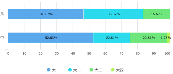 本次調查問卷來自山東農業大學117名在校學生,其中各專業和各學業階段學生均有占比。