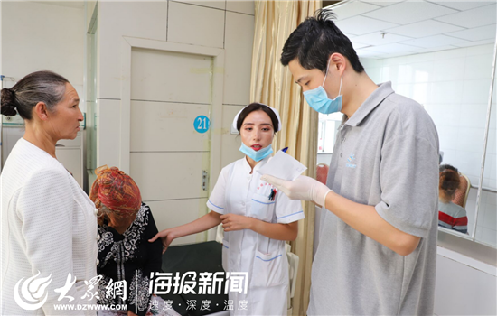 山東大學第二醫(yī)院眼科醫(yī)生魏超與患者和家屬溝通。(仇晶 攝)