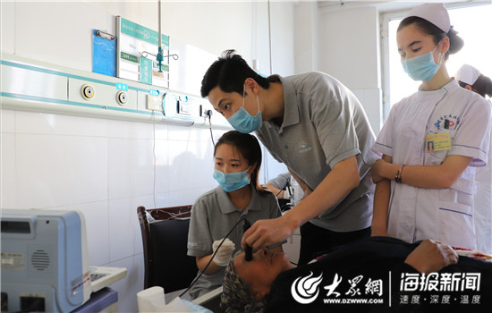 山東大學第二醫院眼科醫生王合雷對患者進行仔細篩查。(仇晶 攝)