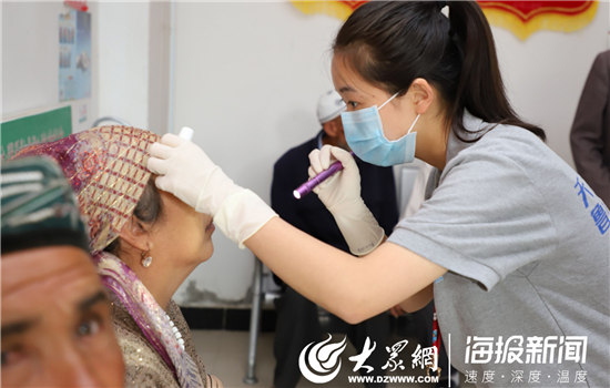 山東大學第二醫院眼科醫生魏超對當地患者進行檢查。(仇晶 攝)