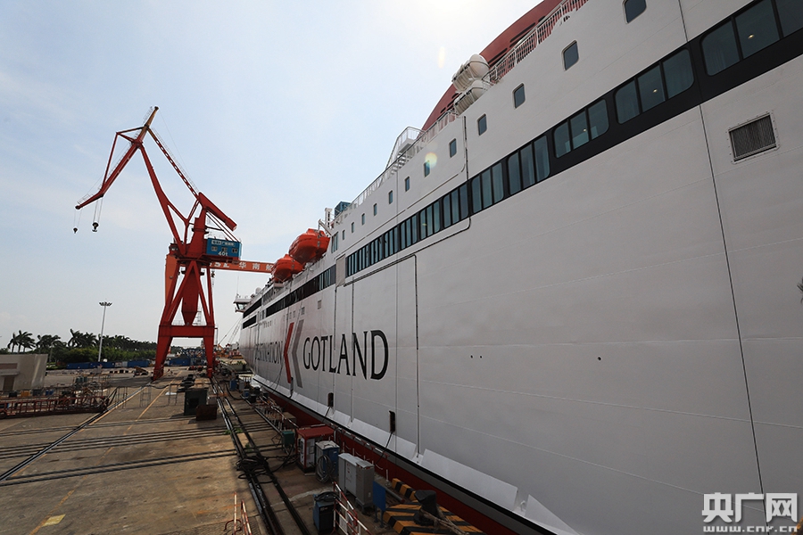 央廣網(wǎng)廣州7月16日消息(記者石昊鑫 劉一荻)在廣船國際有限公司的船塢內(nèi),一艘為瑞典格特蘭航運(yùn)公司建造的雙燃料高速豪華客滾船2號船進(jìn)入最后的裝配階段。