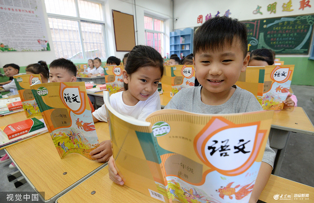 2019年8月31日,河北省邯鄲市各小學返校報到的日子,同學們回到小學領取新課本,迎接新學期。