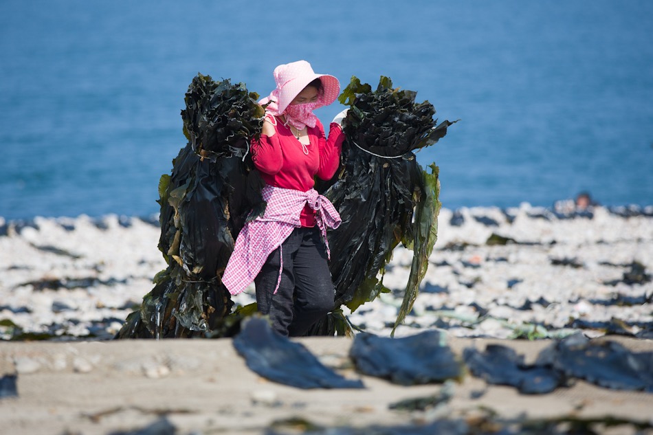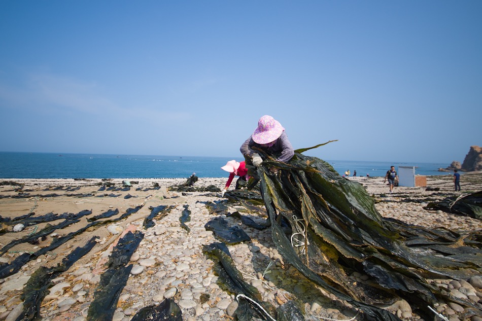 渤海深處直擊漁民收海帶:鋪滿千米海岸線