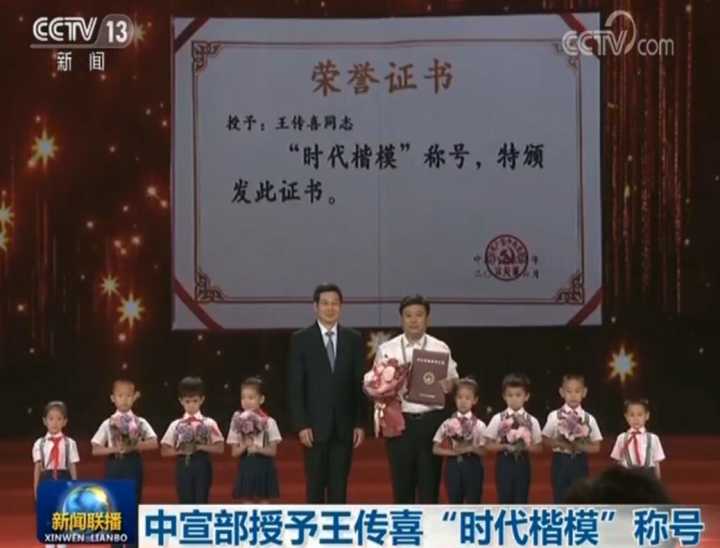 以村民利益為重,謀求鄉(xiāng)村振興發(fā)展。2018年6月13日,王傳喜被授予山東省“齊魯時(shí)代楷模”稱號(hào),2018年6月29日被授予全國(guó)“時(shí)代楷模”榮譽(yù)稱號(hào),被稱為“鄉(xiāng)村振興的領(lǐng)頭雁”。