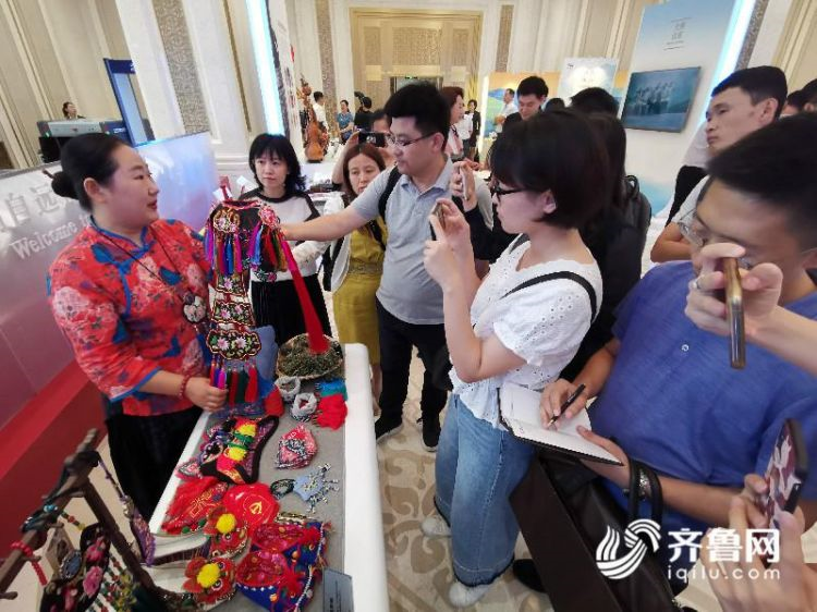 費縣手繡代表性傳承人卞成飛的展位也十分熱鬧,虎頭鞋、香荷包、枕頭、虎頭帽擺得滿滿當當,色彩妍麗又充滿沂蒙特色的手繡作品不光好看,用白芷、辛夷、丁香、吳茱萸、冰片、艾草、朱砂等中草藥填充的香包、枕頭還有養生功能,創意改造后的傳統手工藝品在當代依然受寵。