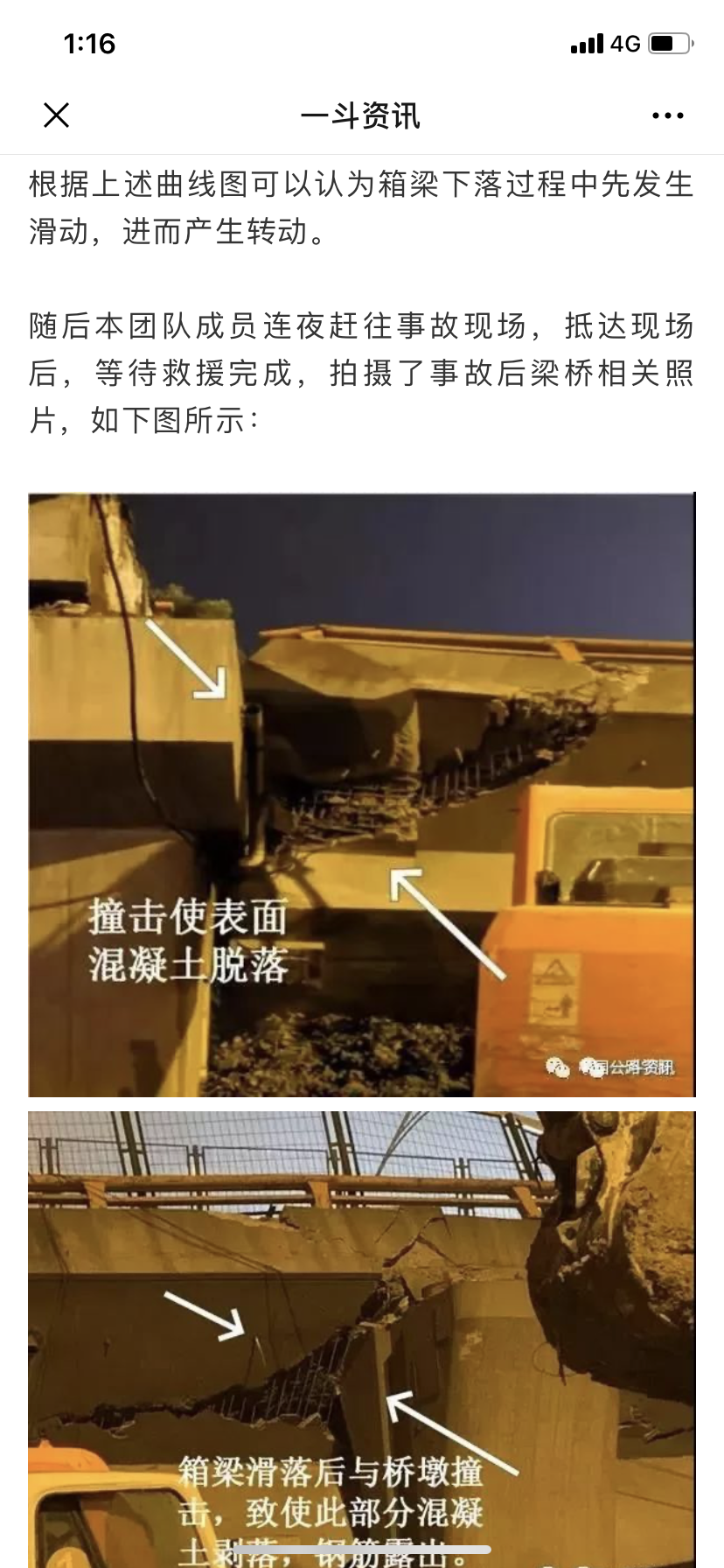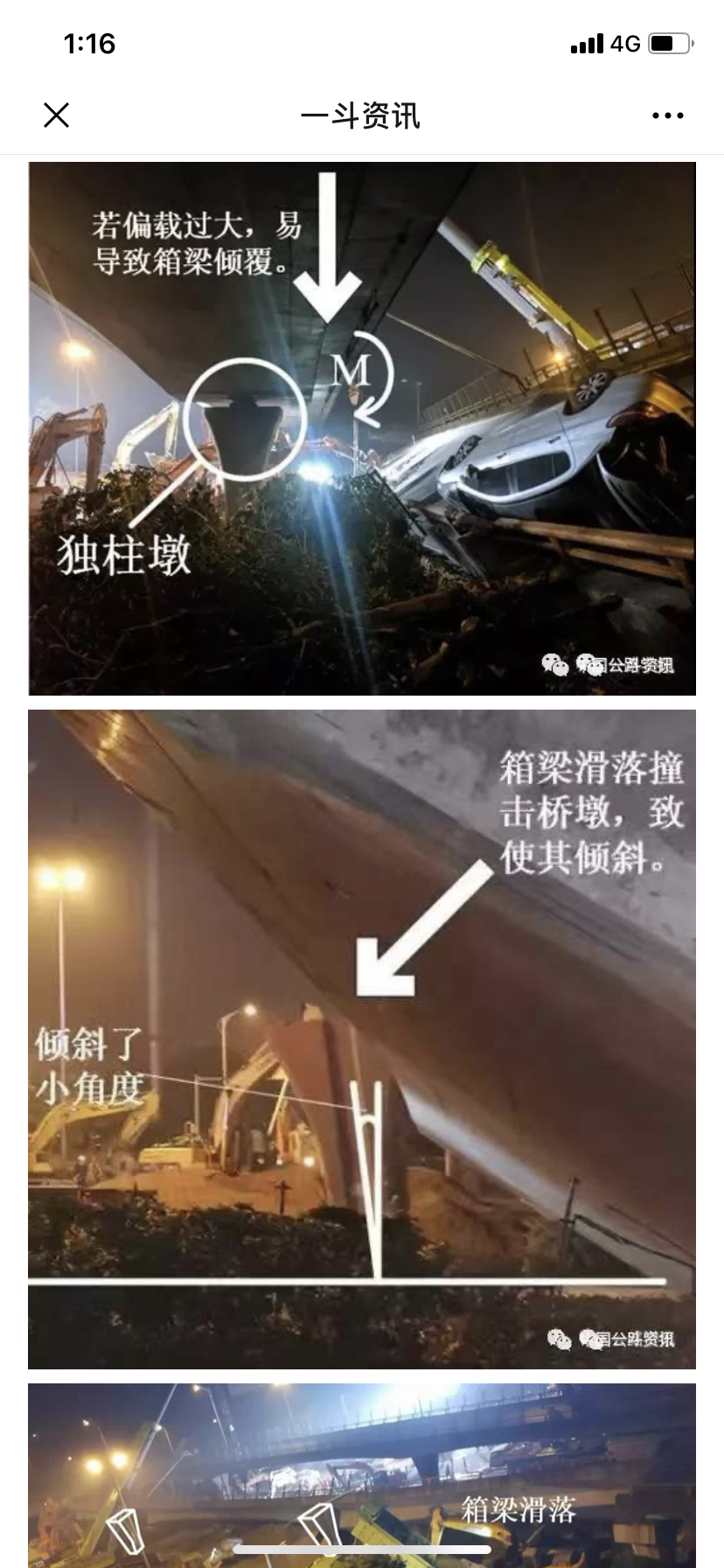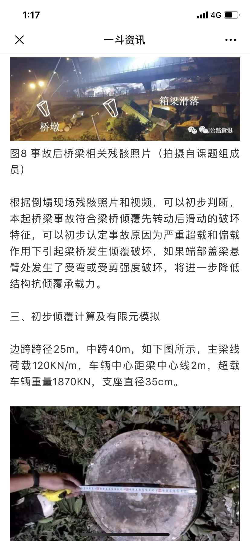 持此看法的專家不只一位,據南方周末報道,在北京建筑大學橋梁專家王銳英看來,“梁體的強度和剛度應該沒有太大問題,橋墩也沒有太大問題。嚴重的問題是橫向失穩。”王銳英說,應該是超重車導致橋梁橫向偏心受壓超過允許限度,梁體從獨柱墩頂傾斜滑落。