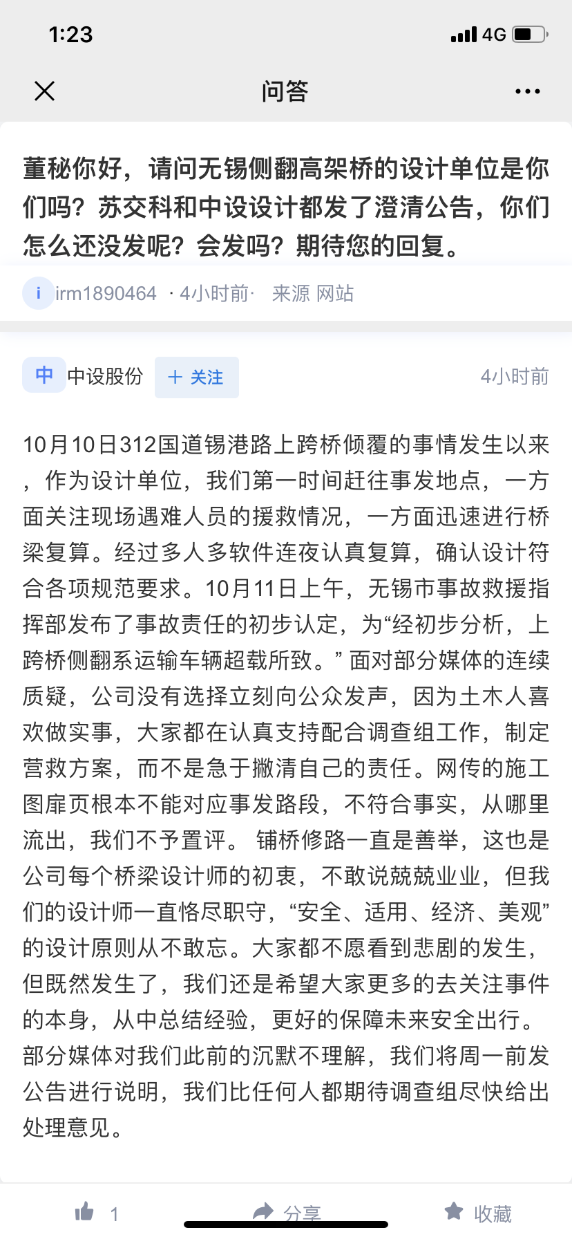 另外,對于涉事橋梁在設計方面是否符合規范,中設股份12日在互動平臺上也做出了回應。