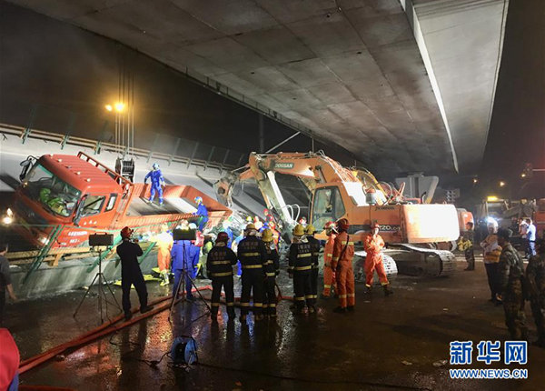 (記者 孫權(quán))10日晚6時(shí)許,江蘇無(wú)錫市北環(huán)路附近一高架橋發(fā)生垮塌。圖為當(dāng)?shù)叵嚓P(guān)部門正在現(xiàn)場(chǎng)救援。據(jù)參與救援者介紹,現(xiàn)場(chǎng)救...<詳細(xì)>
