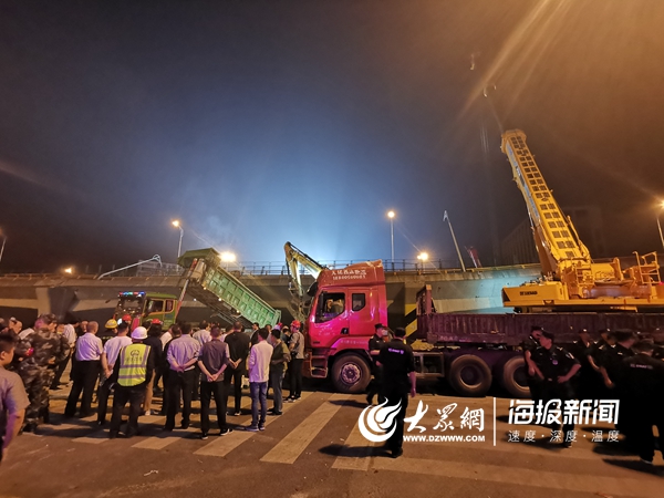 穿過(guò)警戒線,一路停滿各種救援車輛。11日凌晨,記者在橋面?zhèn)确仍F(xiàn)場(chǎng)看到,幾臺(tái)吊車和挖掘機(jī)正在緊張救援中。現(xiàn)場(chǎng)情況比較危險(xiǎn),記者在吊車下方看到上方不時(shí)有異物掉落,砸在施工車輛上,砰砰作響。