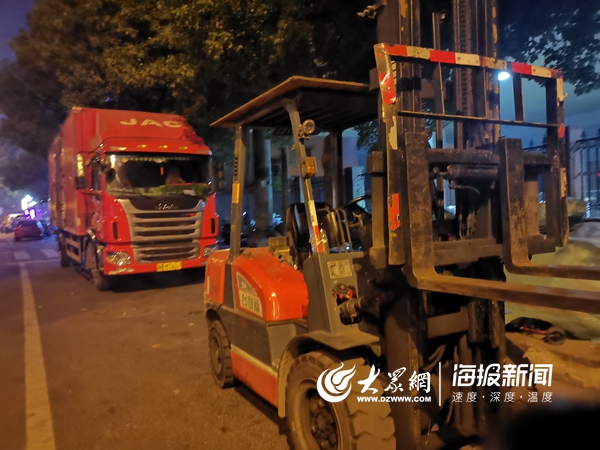 在警戒線外除了群眾,還停滿了各式各樣的大型施工車輛。10日晚11時(shí),站在吊車前等待安排的劉師傅告訴記者,周圍的拖車、吊車、渣土車、挖掘機(jī)等大型施工車輛,都來(lái)自不同單位。“老板一通知,我們就趕過(guò)來(lái)了,前面來(lái)的已經(jīng)進(jìn)去救援了,我們?cè)谶@等安排。”