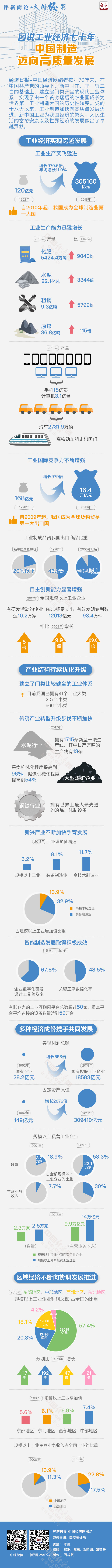 經濟日報-中國經濟網編者按:70年來,在中國共產黨的領導下,新中國在幾乎一窮二白的基礎上,建立起門類齊全的現代工業體系,實現了由一個貧窮落后的農業國成長為世界第一工業制造大國的歷史性轉變。黨的十八大以來,工業制造加快向高質量發展邁進。新中國工業為我國經濟的繁榮、人民生活的富裕安康以及世界經濟的發展做出了卓越貢獻。