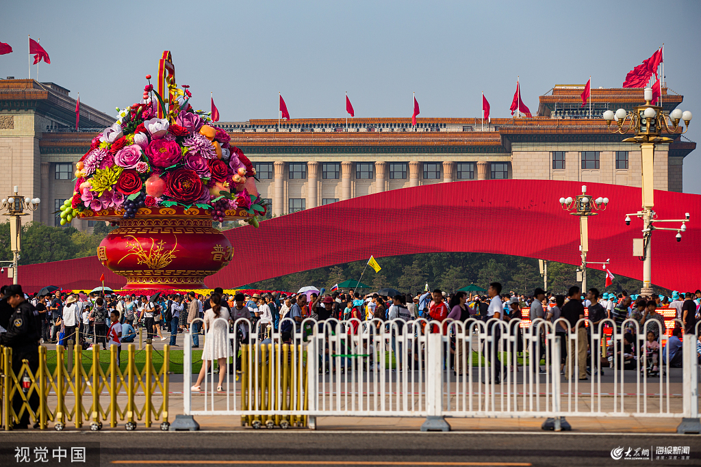 2019年10月2日,北京進入了國慶長假的旅游高峰期,眾多游客和市民涌向天安門廣場。