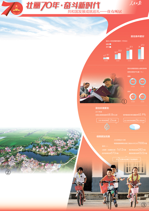 70年砥礪奮進,70年筑夢前行,我國住房建設蹄疾步穩,住房保障體系不斷完善。從“憂居”到“有居”,2018年,城鄉居民人均住房建筑面積比1978年增長4.8倍。從“有居”到“宜居”,曾經的土坯房、平房、筒子樓已成為記憶,城鄉居民居住在鋼筋混凝土或磚混材料結構住房的戶分別占到95.8%、71.2%,越來越多的人住進自己溫馨舒適的家,用上現代化家電,享受現代服務,真切體會到滿滿的獲得感、幸福感、安全感。