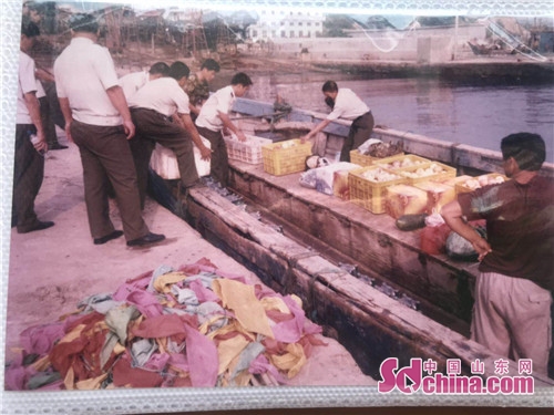 與風浪搏斗、與時間賽跑,“擁軍船”不僅是運輸船、補給船,也是駐島官兵的連心船、救命船。2005年的一天,第四任船長王喜聯突然接到駐島部隊的求助電話,探親家屬的孩子在島上石階玩耍時,不慎滾落摔傷了頭部,傷勢嚴重,需緊急送醫。當時,天氣預報已提醒海上將有8級大風,可王喜聯沒有絲毫猶豫,帶上幾名村民立即駕船上島,接上孩子后顧不上加油,就加足馬力往回趕,終于搶在燃油耗盡之前把孩子送到了醫院,讓孩子得到及時救治。像這樣同舟共濟、生死與共的故事還有很多,“擁軍船”僅在深夜接送官兵及親屬離島就醫就多達53次。
