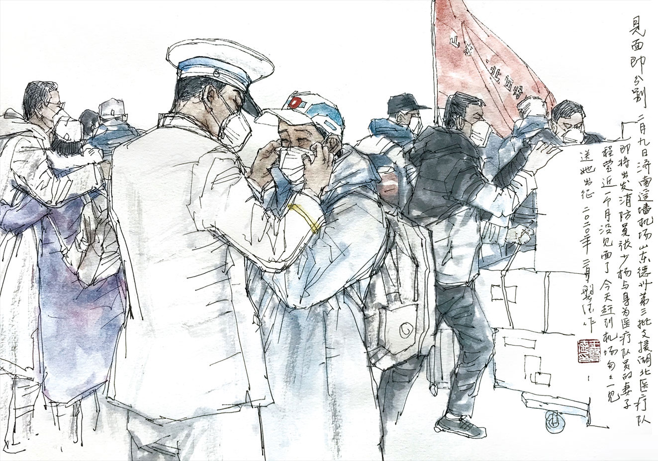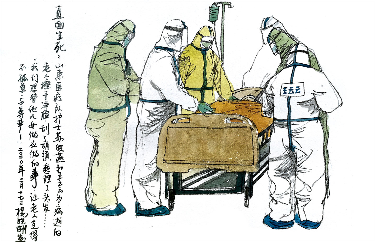 懷著對未知的忐忑,他和同事們做足了準備:每人手提一整套從山東帶過去的防護用品。如同出征前在醫(yī)院里把能想到的都帶上一樣。