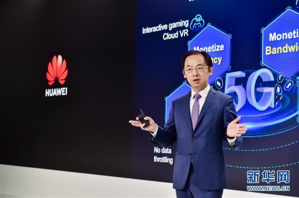 2月20日,在英國倫敦,華為常務董事兼運營商業務總裁丁耘在發布會上發表主題演講。新華社發