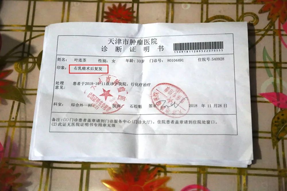 但是歲月靜好只是一場(chǎng)泡影,今年8月,乳腺癌再次復(fù)發(fā),前3期化療效果微乎其微。醫(yī)生悄悄告訴葉連莖的母親黃彩艷,讓她做好心理準(zhǔn)備,癌細(xì)胞已經(jīng)擴(kuò)散到肋骨、胸隔膜、淋巴······如果4期化療失敗,那國內(nèi)真的無藥可救了。