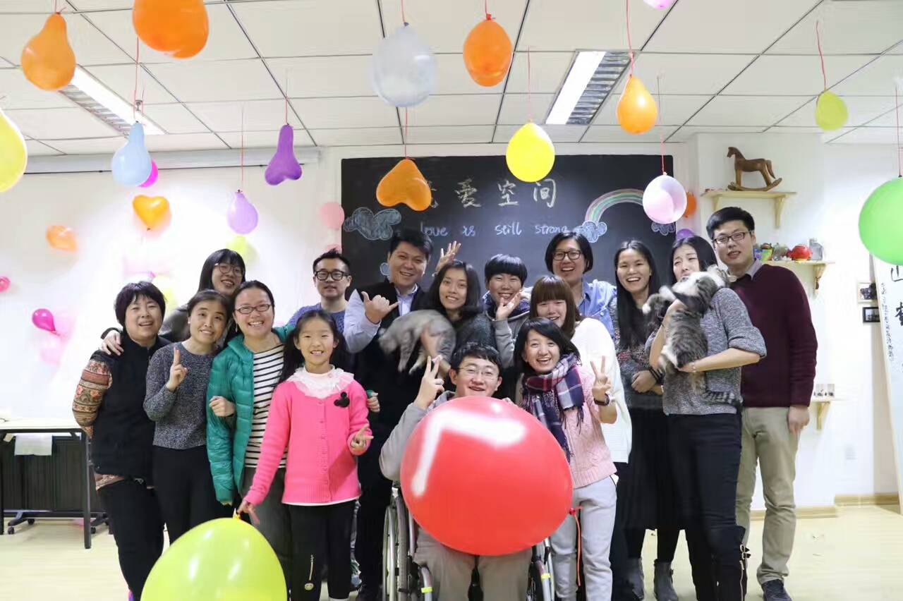 王奕鷗和瓷娃娃罕見病關愛中心小伙伴們的合影